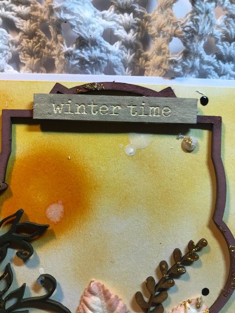 Card using Dusty attic chipboards , mixed media paper coloured using TH Distress inks, chipboards also coloured with TH inks. The flowers were handmade the leaves were from IAR. The sentiment was painted with acrylic paint (then wiped off) The splatters were 13arts and TH sprays.